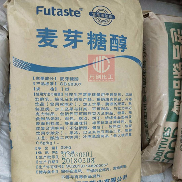 麥芽糖醇是一種性能獨特的低熱值甜味劑。不發酵,進人人體后幾乎不消化,適合糖尿病和肥胖癥患者使用。具有良好的保濕和高黏度作用,保濕作用比山梨醇甚至甘油還要好。麥芽糖醇作為食品添加劑,甜味劑;濕潤劑;穩定劑;組織改進劑;填充劑。被允許在冷飲、糕點、果汁、餅干、面包、醬菜、糖果中使用,可按生產需要確定用量。